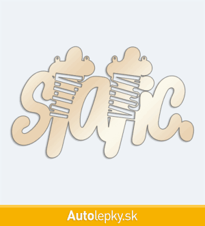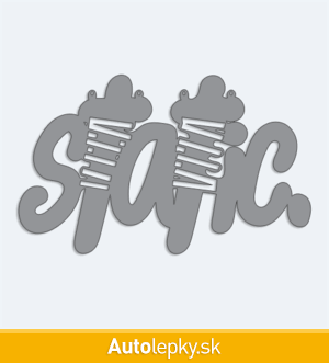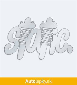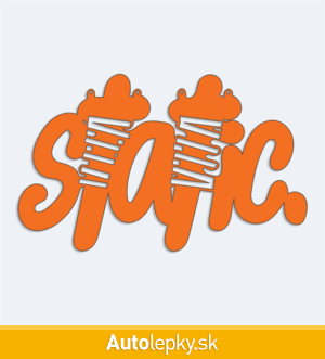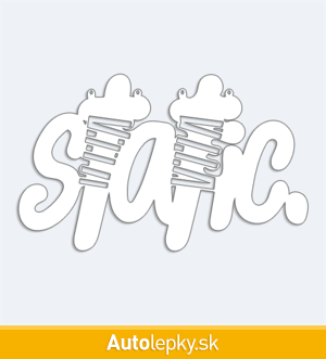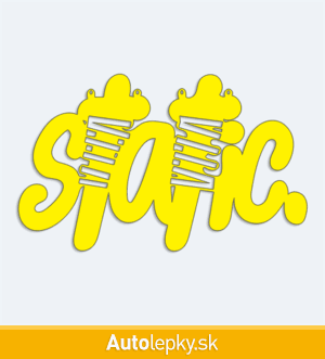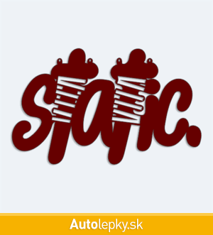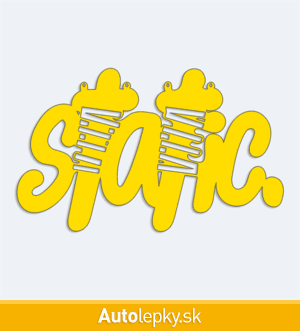 Nálepku tlmiče static na auto vyrábame v 40 farbách a mnohých veľkostiach. Minimálny rozmer samolepky je 13×8 cm, katalógové číslo 5969. Nálepka na auto tlmiče static je vyrobená z kvalitnej samolepiacej fólie s životnosťou 3-5 rokov.