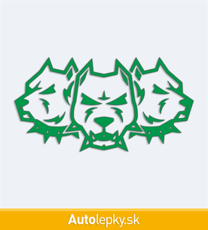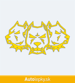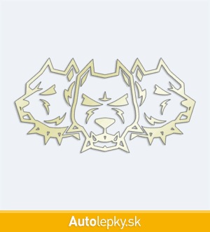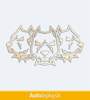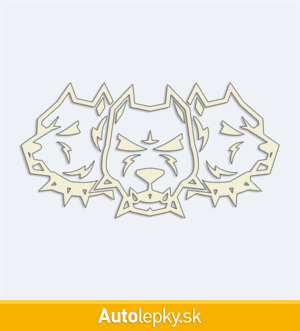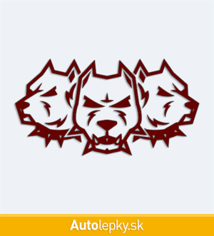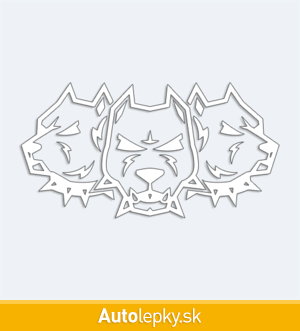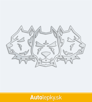 Nálepku trio pitbulů na auto vyrábame v 40 farbách a mnohých veľkostiach. Minimálny rozmer samolepky je 10×5.3 cm, katalógové číslo 6180. Nálepka na auto trio pitbulů je vyrobená z kvalitnej samolepiacej fólie s životnosťou 3-5 rokov.