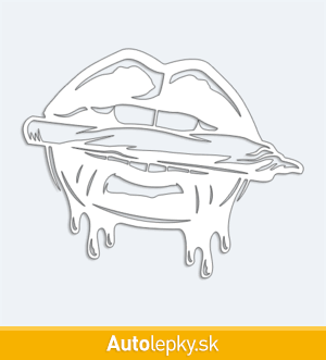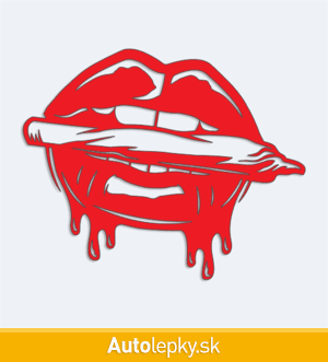 Nálepku ústa s jointom na auto vyrábame v 40 farbách a mnohých veľkostiach. Minimálny rozmer samolepky je 13×10.3 cm, katalógové číslo 6063. Nálepka na auto ústa s jointom je vyrobená z kvalitnej samolepiacej fólie s životnosťou 3-5 rokov.