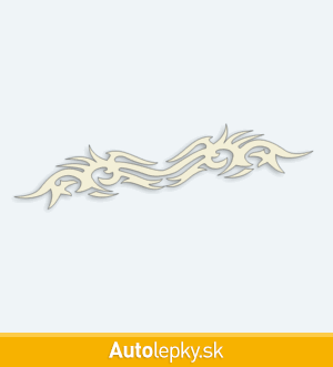 Samolepku na boky dodávame vždy v páre na ľavú a pravú stranu auta. Rozmer samolepky určuje veľkosť iba jednej strany, minimálny rozmer je 40×11.3 cm, katalógové číslo 1057. Nálepka na bok auta tribal tattoo (1057) je vyrobena z kvalitní samolepicí fólie s životností 3-5 let.