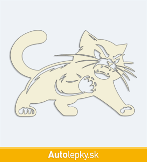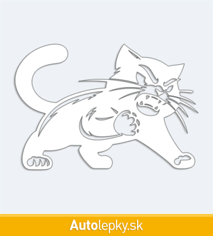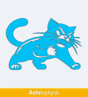 Nálepku nahnevaný kocúr na auto vyrábame v 40 farbách a mnohých veľkostiach. Minimálny rozmer samolepky je 12×8.2 cm, katalógové číslo 6009. Nálepka nahnevaný kocúr na auto je vyrobená z kvalitnej samolepiacej fólie s životnosťou 3-5 rokov.