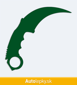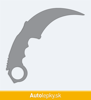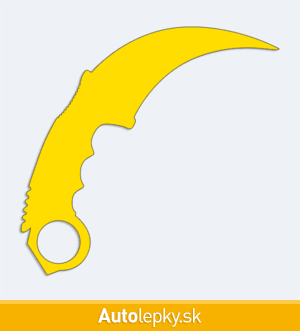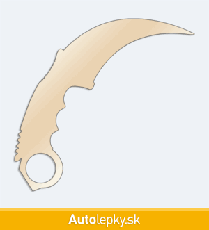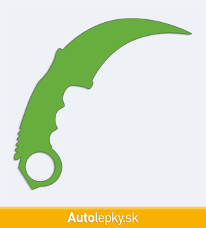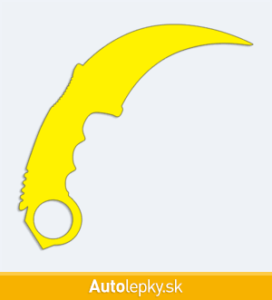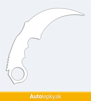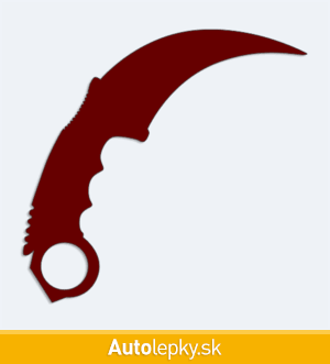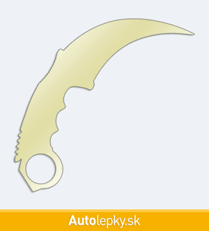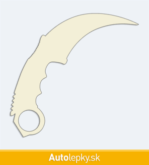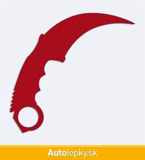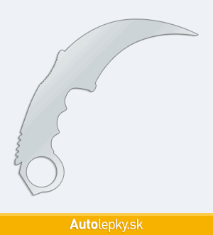 Nálepku karmabit na auto vyrábame v 40 farbách a mnohých veľkostiach. Minimálny rozmer samolepky je 10×9.6 cm, katalógové číslo 6286. Nálepka nož karmabit na auto je vyrobená z kvalitnej samolepiacej fólie s životnosťou 3-5 rokov.