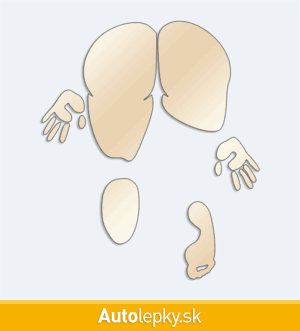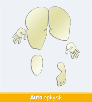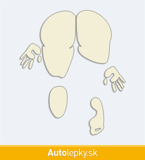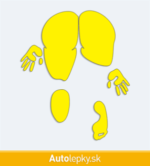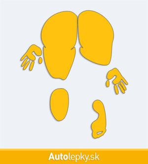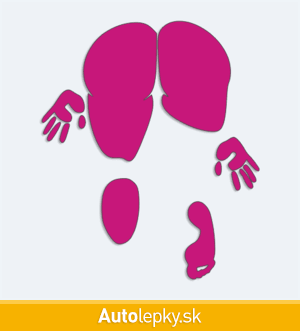 Nálepku otlačok zadku na auto vyrábame v 40 farbách a mnohých veľkostiach. Minimálny rozmer samolepky je 8.4×10 cm, katalógové číslo 6188. Nálepka otlačok zadku na auto je vyrobená z kvalitnej samolepiacej fólie s životnosťou 3-5 rokov.