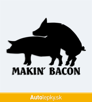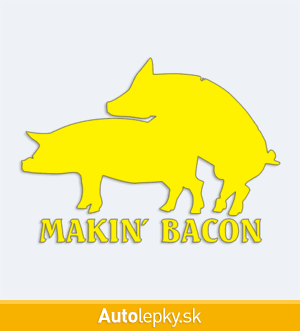 Nálepku prasce s nápisom na auto vyrábame v 40 farbách a mnohých veľkostiach. Minimálny rozmer samolepky je 10×7.2 cm, katalógové číslo 1662. Nálepka prasce s nápisom MAKIN´ BACON je vyrobená z kvalitnej samolepiacej fólie s životnosťou 3-5 rokov.