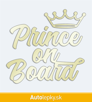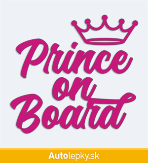 Nálepku Prince on Board na auto vyrábame v 40 farbách a mnohých veľkostiach. Minimálny rozmer samolepky je 10×9.4 cm, katalógové číslo 5461. Nálepka Prince on Board na auto je vyrobená z kvalitnej samolepiacej fólie s životnosťou 3-5 rokov.