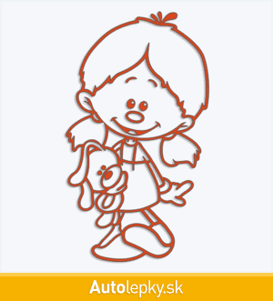 Samolepku dieťa v aute dievča s plyšákom môžete doplniť menom dieťaťa alebo krátkym ľubovoľným textom. Minimálny rozmer samolepky je 6.9×12 cm, katalógové číslo 2114. Nálepka s menom dieťaťa - dievča s plyšákom upozorňuje na prepravované dieťa v aute.