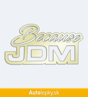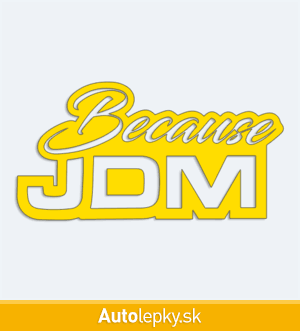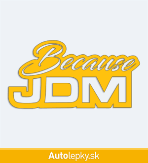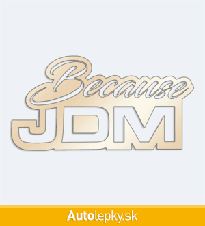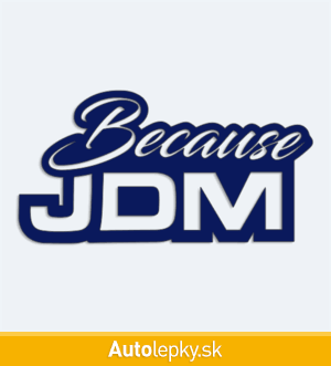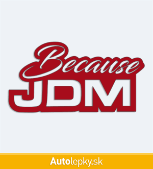 Nálepku Because JDM na auto vyrábame v 40 farbách a mnohých veľkostiach. Minimálny rozmer samolepky je 10×5.2 cm, katalógové číslo 5961. Nálepka s nápisom Because JDM je vyrobená z kvalitnej samolepiacej fólie s životnosťou 3-5 rokov.