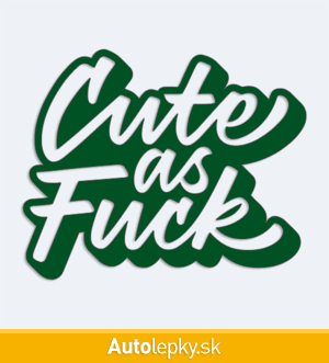 Nálepku Cute as Fuck na auto vyrábame v 40 farbách a mnohých veľkostiach. Minimálny rozmer samolepky je 10×8.1 cm, katalógové číslo 6039. Nálepka s nápisom Cute as Fuck je vyrobená z kvalitnej samolepiacej fólie s životnosťou 3-5 rokov.