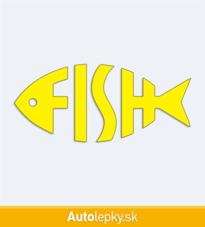 Nálepku FISH na auto vyrábame v 40 farbách a mnohých veľkostiach. Minimálny rozmer samolepky je 10×4.4 cm, katalógové číslo 6115. Nálepka s nápisom FISH je vyrobená z kvalitnej samolepiacej fólie s životnosťou 3-5 rokov.