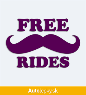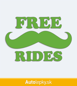 Nálepku Free Rides na auto vyrábame v 40 farbách a mnohých veľkostiach. Minimálny rozmer samolepky je 10×6.6 cm, katalógové číslo 1941. Nálepka s nápisom Free Rides na auto je vyrobená z kvalitnej samolepiacej fólie s životnosťou 3-5 rokov.