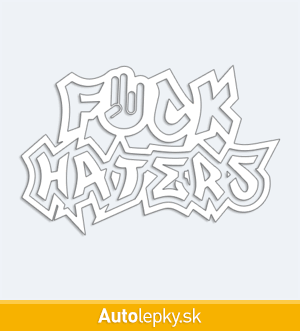 Nálepku Fuck Haters na auto vyrábame v 40 farbách a mnohých veľkostiach. Minimálny rozmer samolepky je 10×6.6 cm, katalógové číslo 5557. Nálepka s nápisom Fuck Haters je vyrobená z kvalitnej samolepiacej fólie s životnosťou 3-5 rokov.