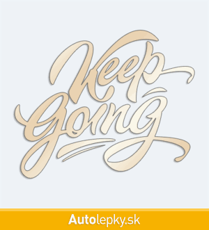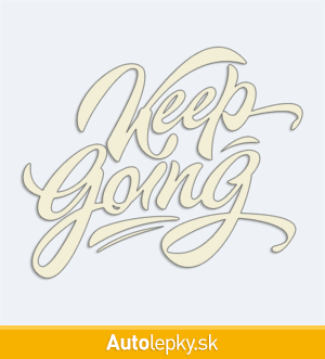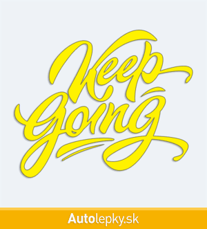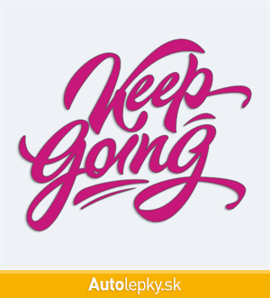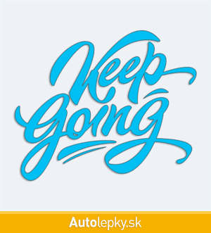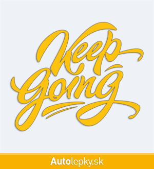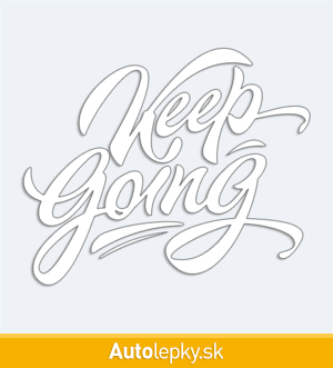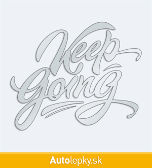 Nálepku Keep Going na auto vyrábame v 40 farbách a mnohých veľkostiach. Minimálny rozmer samolepky je 10×8.3 cm, katalógové číslo 6117. Nálepka s nápisom Keep Going je vyrobená z kvalitnej samolepiacej fólie s životnosťou 3-5 rokov.
