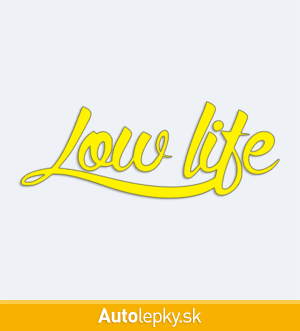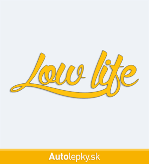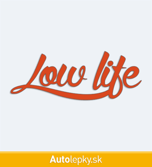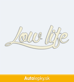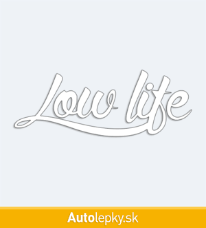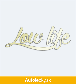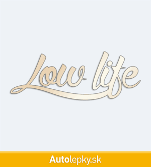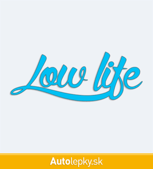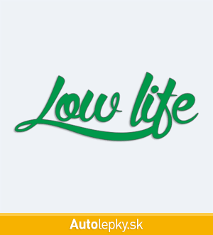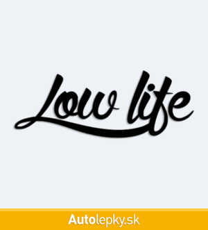 Nálepku Low Life na auto vyrábame v 40 farbách a mnohých veľkostiach. Minimálny rozmer samolepky je 10×3.7 cm, katalógové číslo 6209. Nálepka s nápisom Low Life je vyrobená z kvalitnej samolepiacej fólie s životnosťou 3-5 rokov.