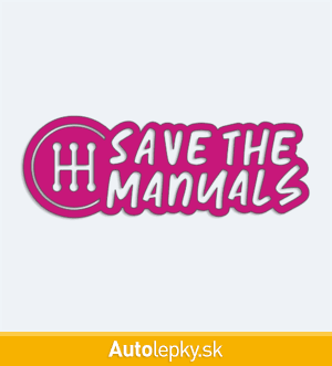 Nálepku save the manuals na auto vyrábame v 40 farbách a mnohých veľkostiach. Minimálny rozmer samolepky je 12×4.3 cm, katalógové číslo 5857. Nálepka s nápisom save the manuals je vyrobená z kvalitnej samolepiacej fólie s životnosťou 3-5 rokov.