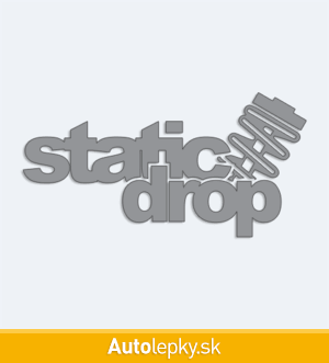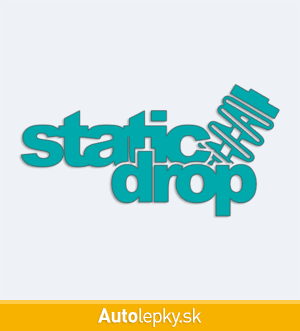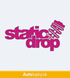 Nálepku static drop na auto vyrábame v 40 farbách a mnohých veľkostiach. Minimálny rozmer samolepky je 10×5.1 cm, katalógové číslo 6205. Nálepka s nápisom static drop je vyrobená z kvalitnej samolepiacej fólie s životnosťou 3-5 rokov.