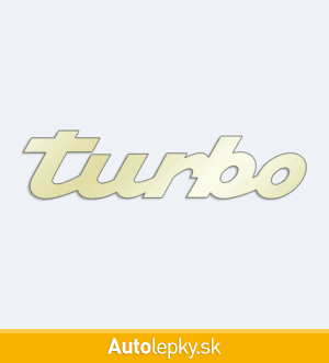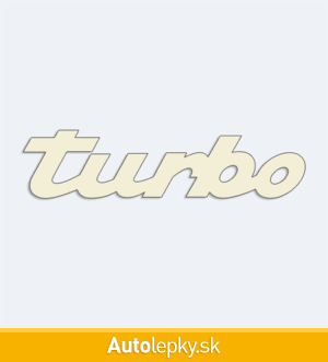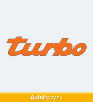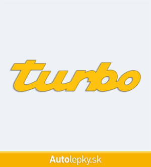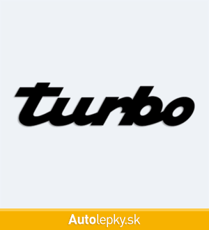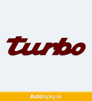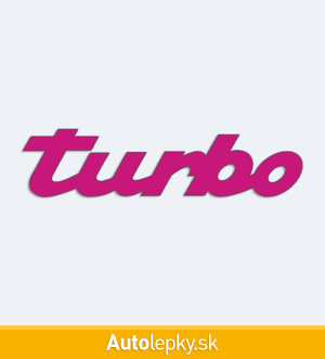 Nálepku turbo na auto vyrábame v 40 farbách a mnohých veľkostiach. Minimálny rozmer samolepky je 10×2.4 cm, katalógové číslo 6113. Nálepka s nápisom turbo je vyrobená z kvalitnej samolepiacej fólie s životnosťou 3-5 rokov.