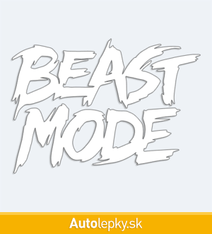 Nálepku BEAST MODE na auto vyrábame v 40 farbách a mnohých veľkostiach. Minimálny rozmer samolepky je 10×7.1 cm, katalógové číslo 5965. Nálepka s textom BEAST MODE je vyrobená z kvalitnej samolepiacej fólie s životnosťou 3-5 rokov.