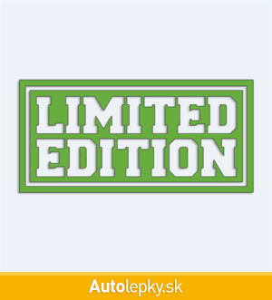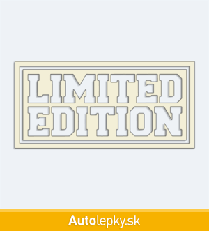 Nálepku Limited Edition na auto vyrábame v 40 farbách a mnohých veľkostiach. Minimálny rozmer samolepky je 10×4.8 cm, katalógové číslo 6149. Nálepka s textom Limited Edition je vyrobená z kvalitnej samolepiacej fólie s životnosťou 3-5 rokov.