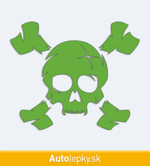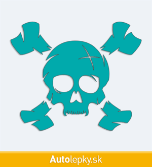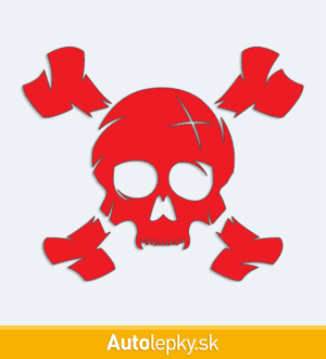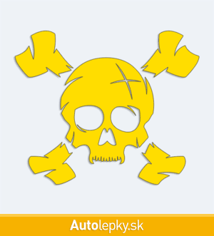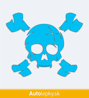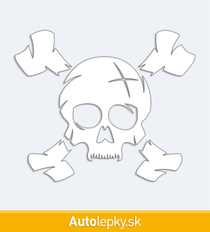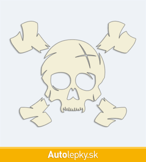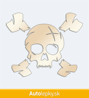 Nálepku zkrížené kosti na auto vyrábame v 40 farbách a mnohých veľkostiach. Minimálny rozmer samolepky je 10×8.4 cm, katalógové číslo 6139. Nálepka s zkríženými kosťami na auto je vyrobená z kvalitnej samolepiacej fólie s životnosťou 3-5 rokov.