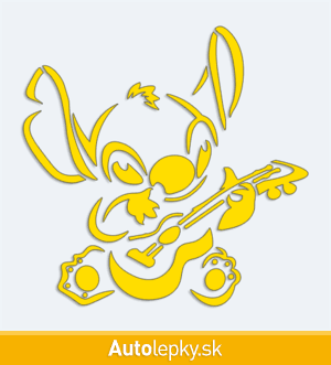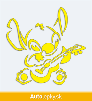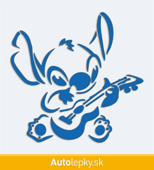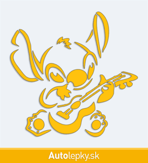Nálepku Stitch s kytarou na auto vyrábame v 40 farbách a mnohých veľkostiach. Minimálny rozmer samolepky je 10×9.8 cm, katalógové číslo 6184. Nálepka Stitch s kytarou na auto je vyrobená z kvalitnej samolepiacej fólie s životnosťou 3-5 rokov.