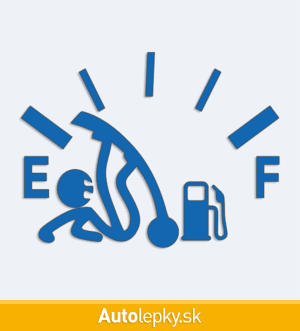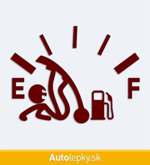 Nálepku ukazovateľ paliva na auto vyrábame v 40 farbách a mnohých veľkostiach. Minimálny rozmer samolepky je 8×6.1 cm, katalógové číslo 6275. Nálepka ukazovateľ paliva s postavičkou je vyrobená z kvalitnej samolepiacej fólie s životnosťou 3-5 rokov.