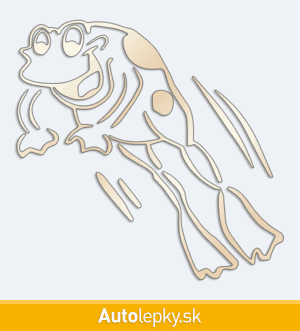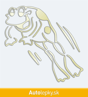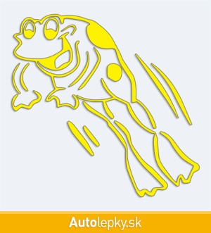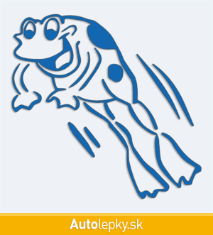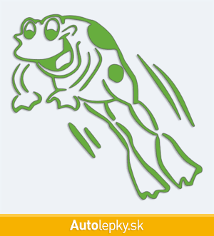 Nálepku žaba v skoku na auto vyrábame v 40 farbách a mnohých veľkostiach. Minimálny rozmer samolepky je 10×9.8 cm, katalógové číslo 5974. Nálepka žaba v skoku na auto je vyrobená z kvalitnej samolepiacej fólie s životnosťou 3-5 rokov.