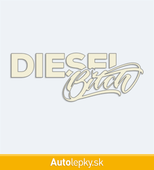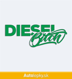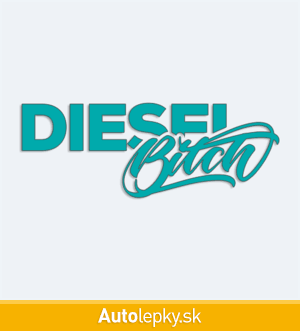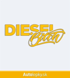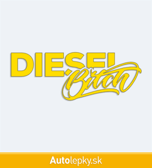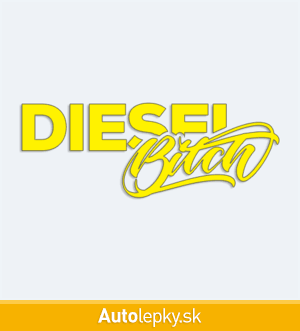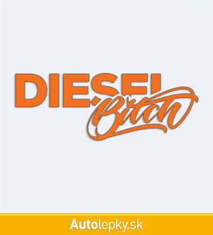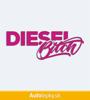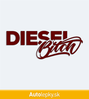 Nálepku Diesel Bitch na auto vyrábame v 40 farbách a mnohých veľkostiach. Minimálny rozmer samolepky je 10×3.7 cm, katalógové číslo 6237. Nápis Diesel Bitch na auto je vyrobená z kvalitnej samolepiacej fólie s životnosťou 3-5 rokov.