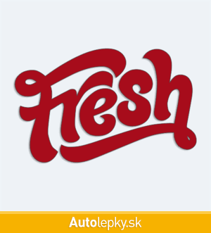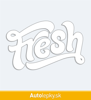 Nálepku nápis fresh na auto vyrábame v 40 farbách a mnohých veľkostiach. Minimálny rozmer samolepky je 10×6.3 cm, katalógové číslo 6194. Nápis fresh na auto je vyrobená z kvalitnej samolepiacej fólie s životnosťou 3-5 rokov.