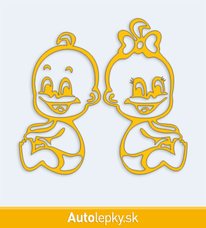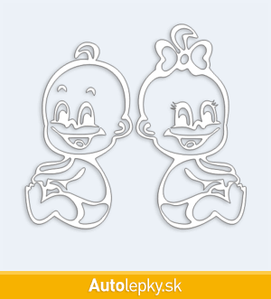 Samolepku dieťa v aute chlapec s dievčatkom môžete doplniť menom dieťaťa alebo krátkym ľubovoľným textom. Minimálny rozmer samolepky je 10.8×10 cm, katalógové číslo 4352. Polep dieťa v aute dvojčatá - chlapec s dievčatkom upozorňuje na prepravované dieťa v aute.