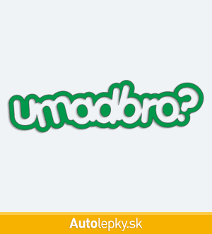 Nálepku nápis UMADBRO? na auto vyrábame v 40 farbách a mnohých veľkostiach. Minimálny rozmer samolepky je 10×2.7 cm, katalógové číslo 6445. Polep na auto s nápisom U Mad Bro? je vyrobená z kvalitnej samolepiacej fólie s životnosťou 3-5 rokov.