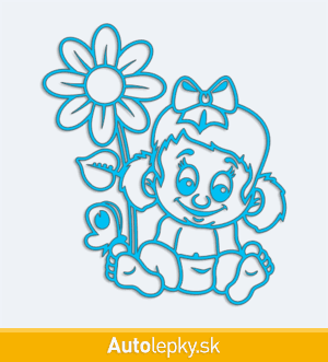 Originálnu nálepku dieťa v aute dievčatko s kytičkou doplníte menom dieťaťa alebo textom s dĺžkou až 30 znakov. Minimálny rozmer samolepky je 8.6×10 cm, katalógové číslo 22453. Samolepka dievčatko s kytičkou s menom upozorní ostatných vodičov na prepravované dieťa v aute.