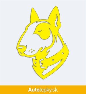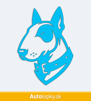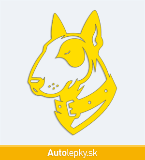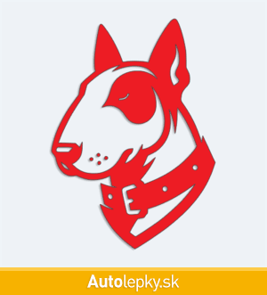 Nálepku hlava bullteriera na auto vyrábame v 40 farbách a mnohých veľkostiach. Minimálny rozmer samolepky je 8.6×12 cm, katalógové číslo 6099. Samolepka hlava bullteriera na auto je vyrobená z kvalitnej samolepiacej fólie s životnosťou 3-5 rokov.