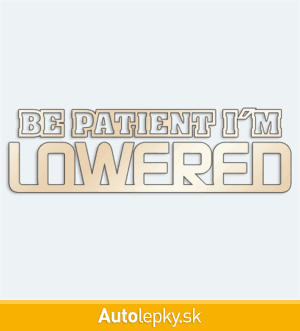 Nálepku nápis LOWERED na auto vyrábame v 40 farbách a mnohých veľkostiach. Minimálny rozmer samolepky je 12×3.6 cm, katalógové číslo 4654. Samolepka na auto s nápisom Be patient i'm Lowered je vyrobená z kvalitnej samolepiacej fólie s životnosťou 3-5 rokov.