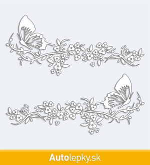 Samolepku na boky dodávame vždy v páre na ľavú a pravú stranu auta. Rozmer samolepky určuje veľkosť iba jednej strany, minimálny rozmer je 50×22.1 cm, katalógové číslo 1199. Samolepky na bok auta kvety a motýľ je vyrobena z kvalitní samolepicí fólie s životností 3-5 let.